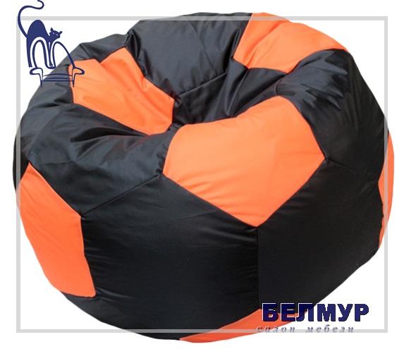 Бескаркасное кресло в форме мяча выполнены из двух и более расцветок. Такое кресло удобно тем, что его не надо ставить и придавать форму прежде чем сесть. Кресло имеет внутренний чехол на молнии и внешний съёмный чехол. Размер Стандарт (100*100 см)