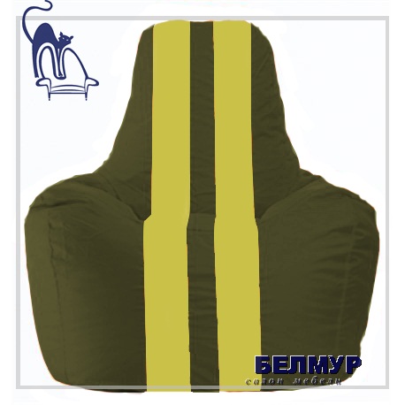 Бескаркасное кресло Flagman Спортинг тёмно-оливковый с жёлтыми полосками С1.1-57