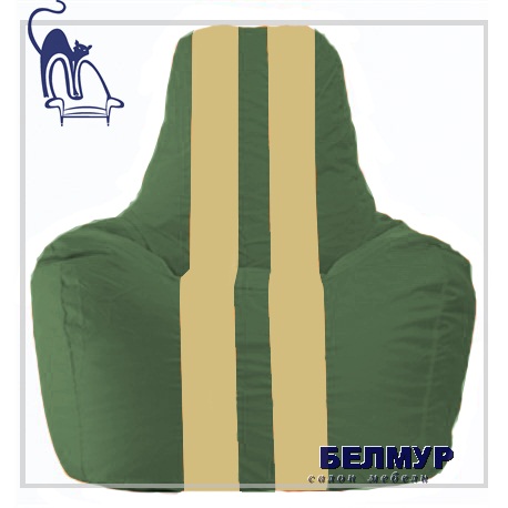 Бескаркасное кресло Flagman Спортинг тёмно-зелёный с светло-бежёвыми полосками С1.1-62