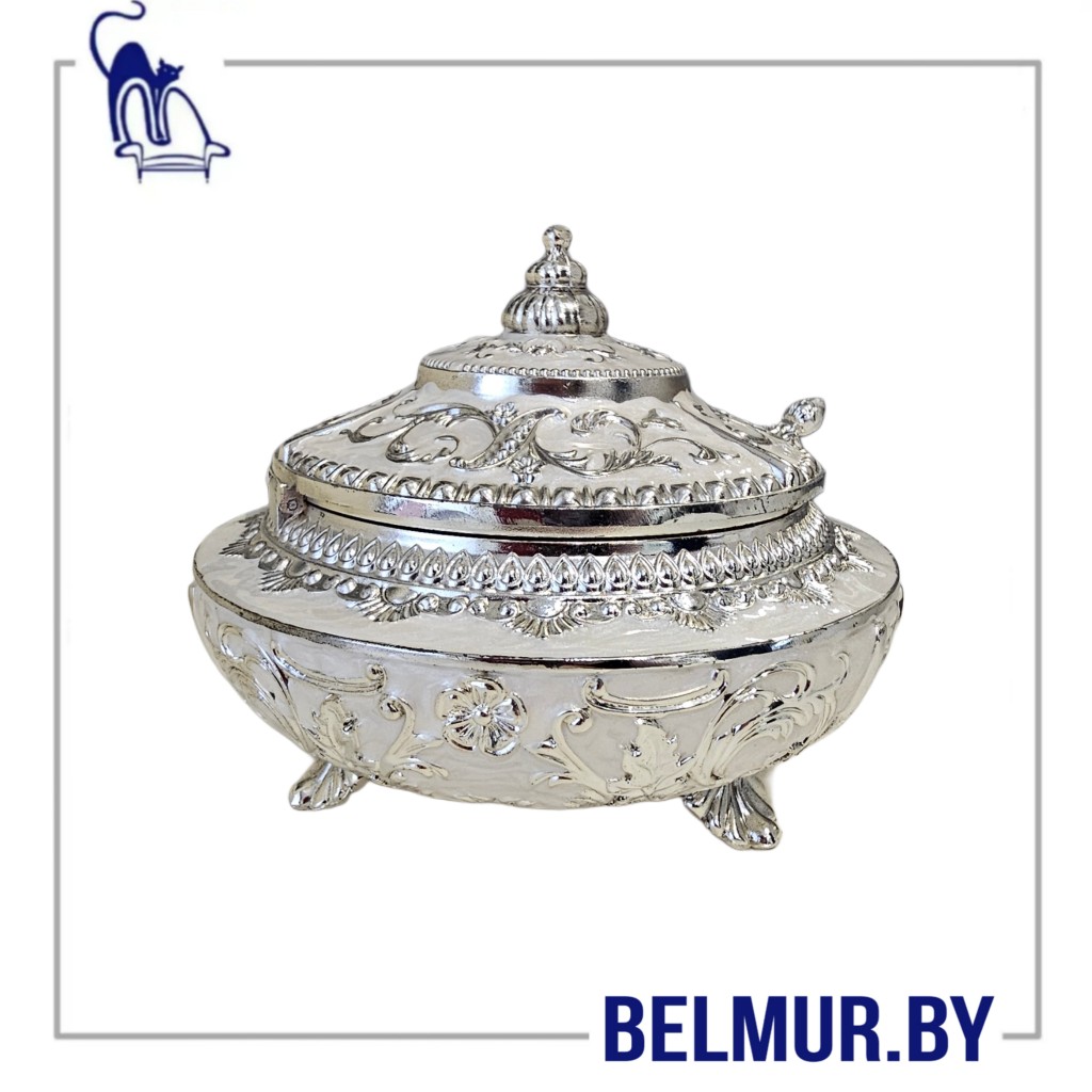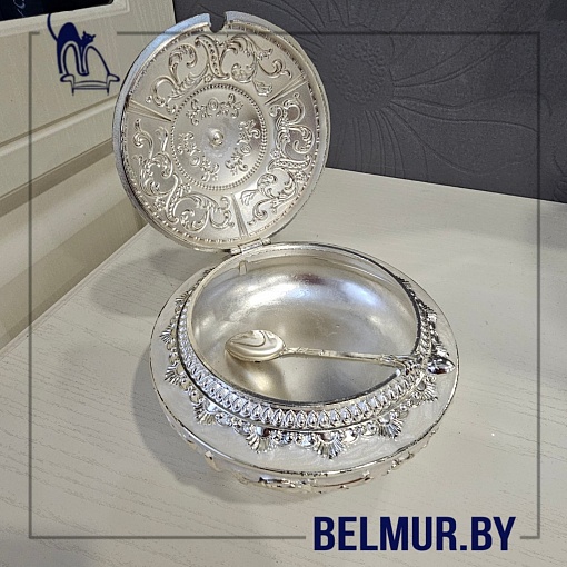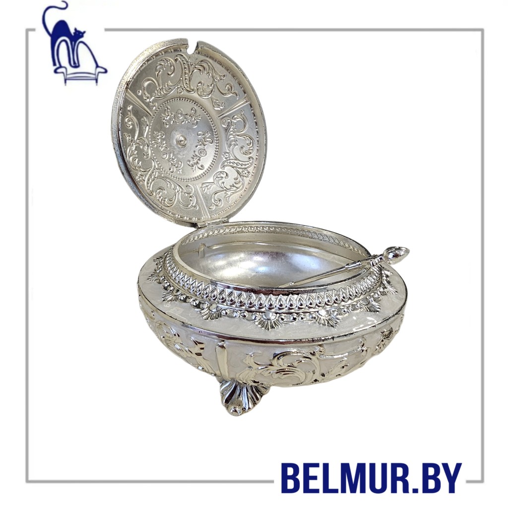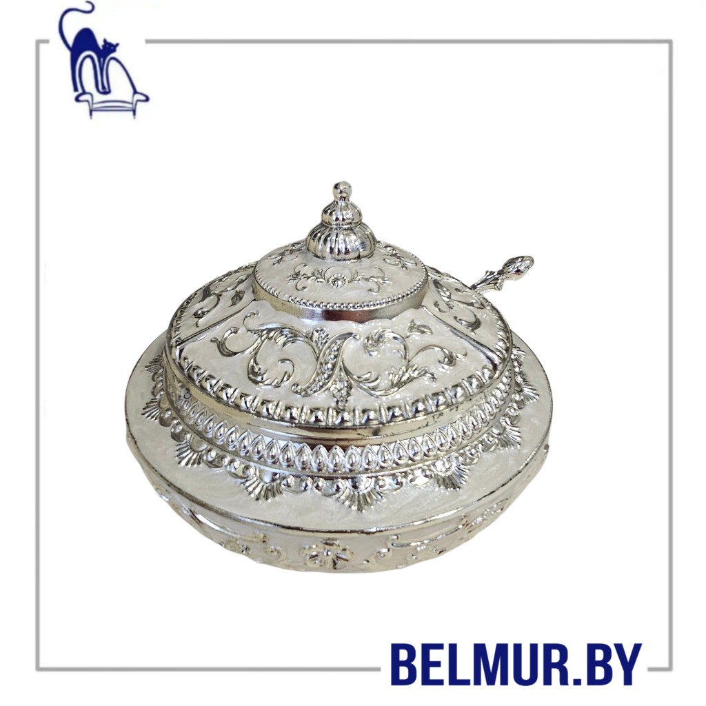 Сахарница метеллическая с крышкой и ложкой, D=14см, h=10см
