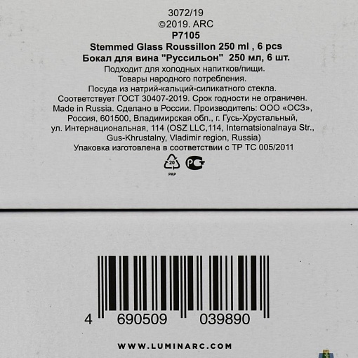 Набор бокалов для вина Roussillon 6 шт. 250 мл