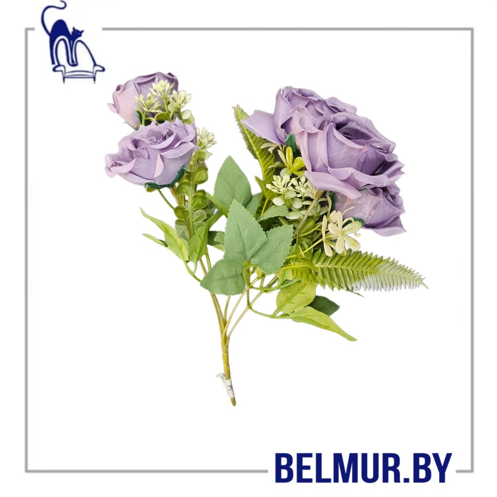 Цветы искусственные-букет роз фиолетовых, 30 см