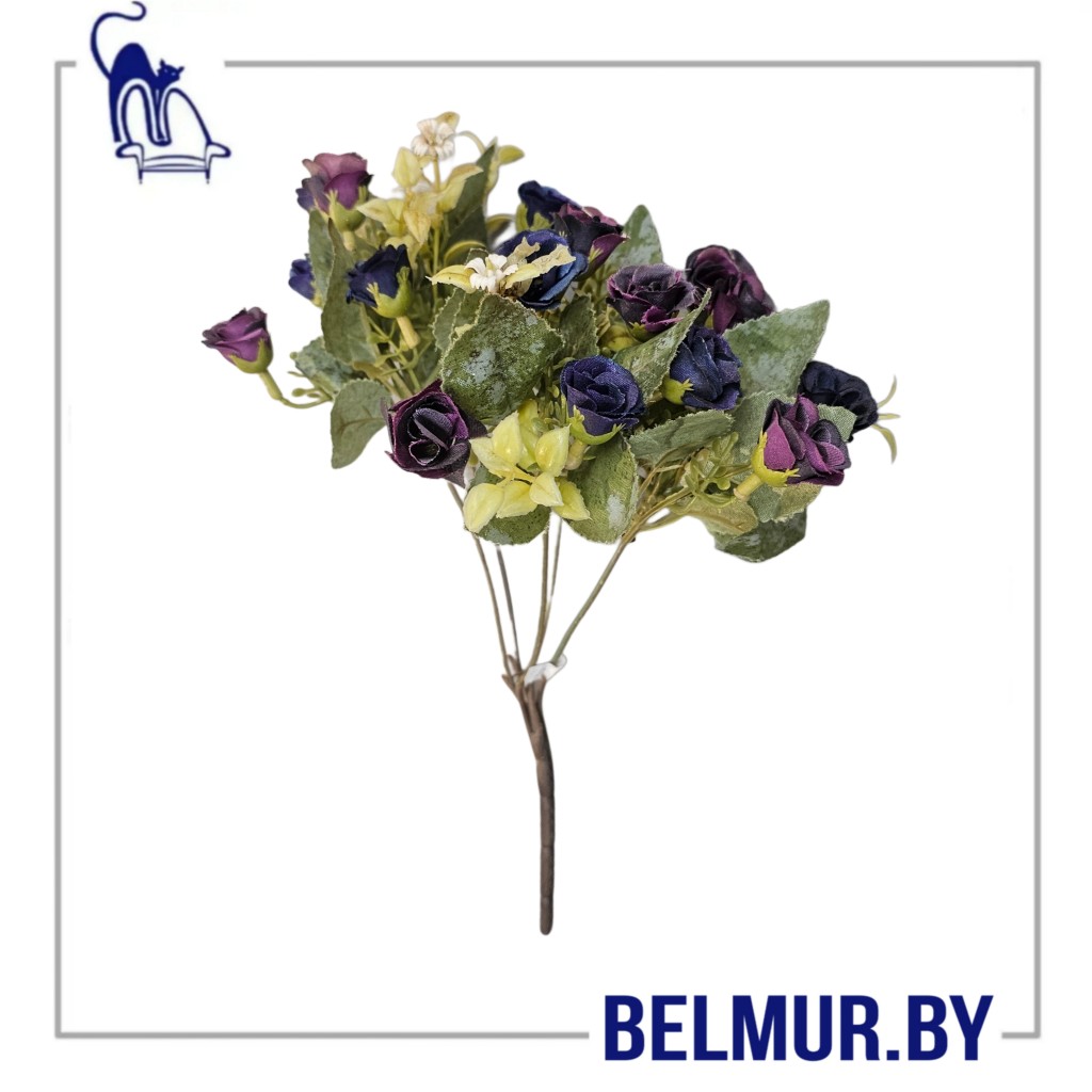 Цветы искусственные-букет роз фиолетовых с добавками, 35 см