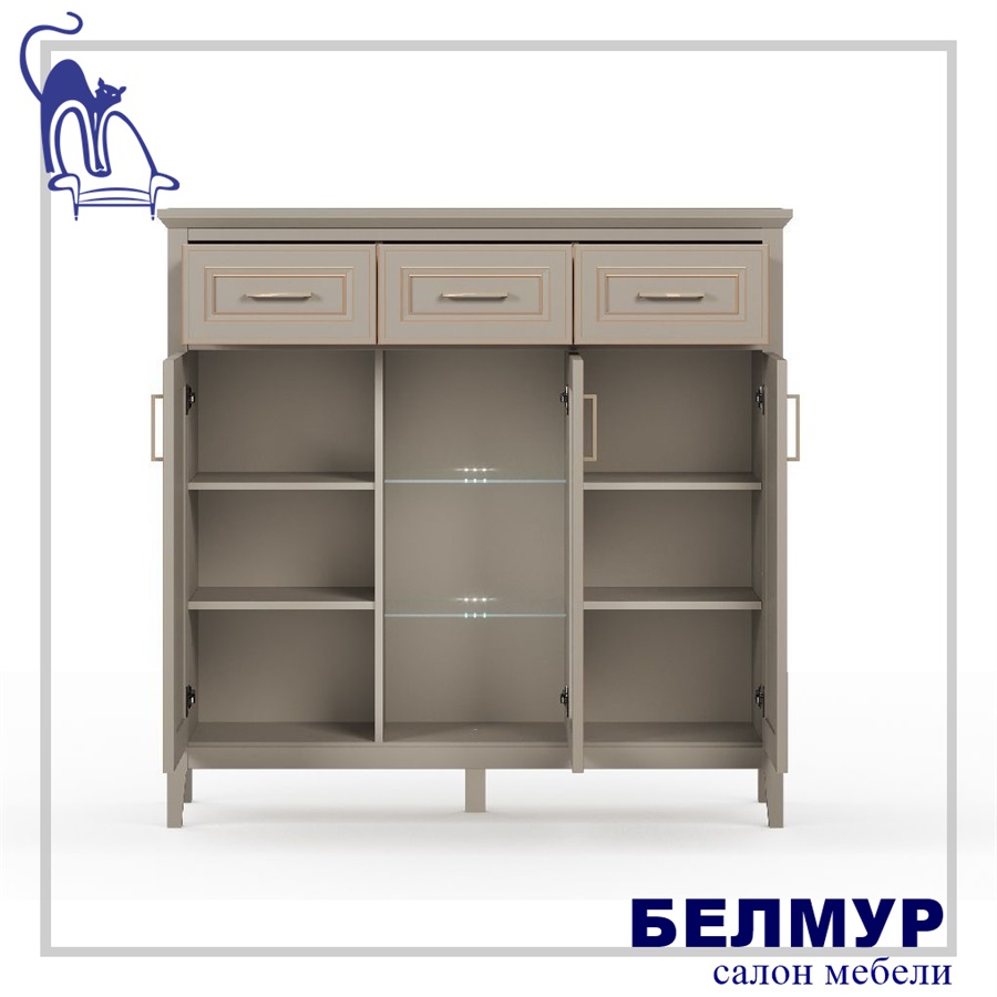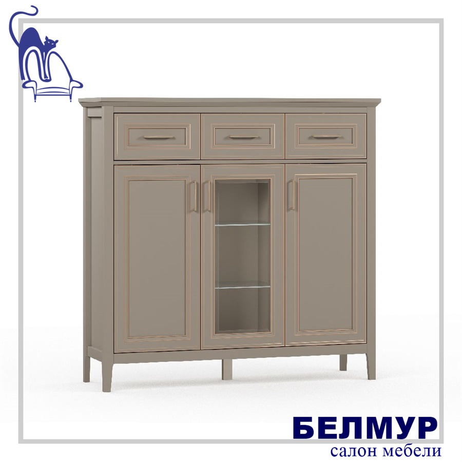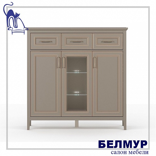- в нижней — 3 распашные двери, одна из которых со стеклянной вставкой (стекло с фацетом)
