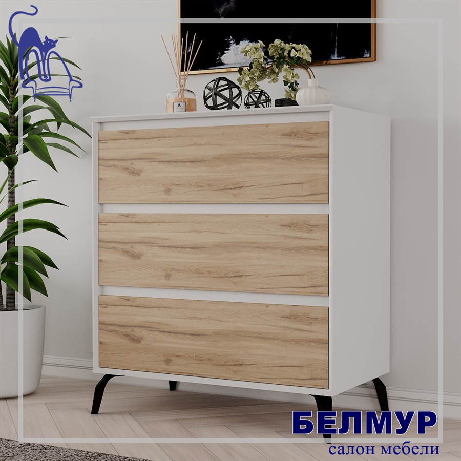 Комод Aleksa 3, 81.2х79.9х45, Белый премиум/Дуб элисон/черный