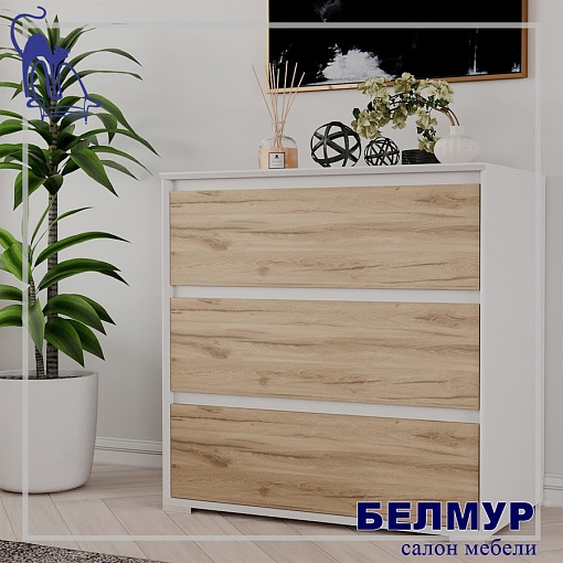 Комод Aleksa 3, 81.2х79.9х45, Белый премиум/Дуб элисон