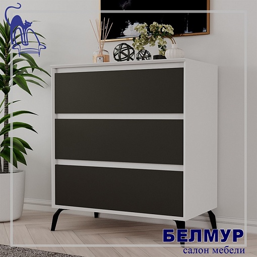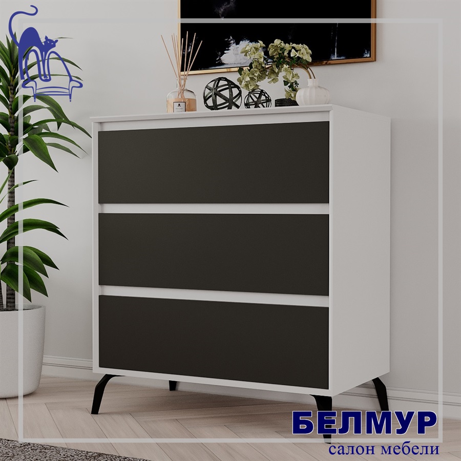 Комод Aleksa 3, 81.2х79.9х45, Белый премиум/Кобальт/черный
