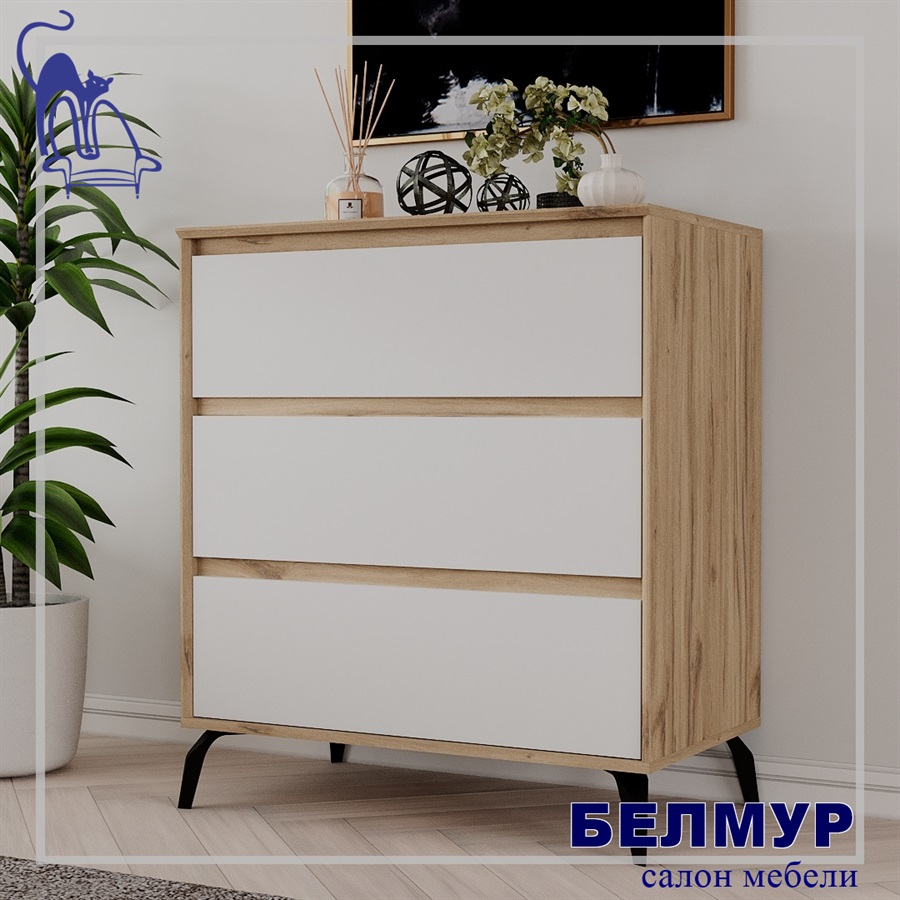 Комод Aleksa 3, 81.2х79.9х45, Дуб элисон/Белый премиум/черный
