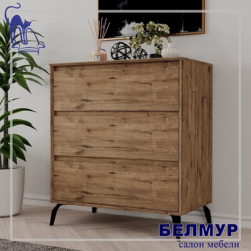 Комод Aleksa 3, 81.2х79.9х45, Дуб веллингтон/Дуб веллингтон/черный