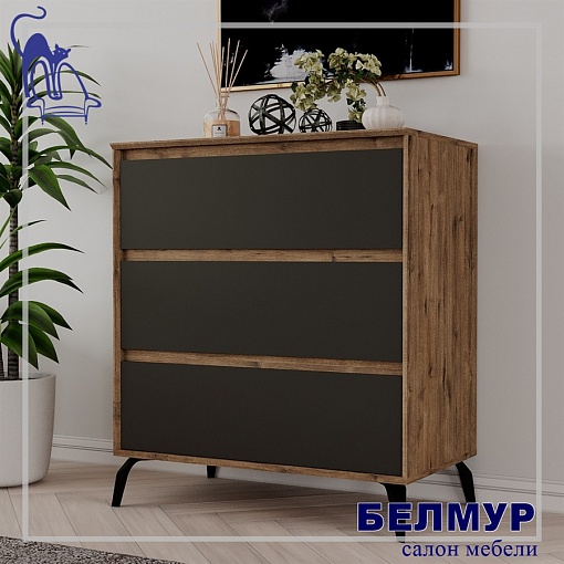 Комод Aleksa 3, 81.2х79.9х45, Дуб веллингтон/Кобальт/черный