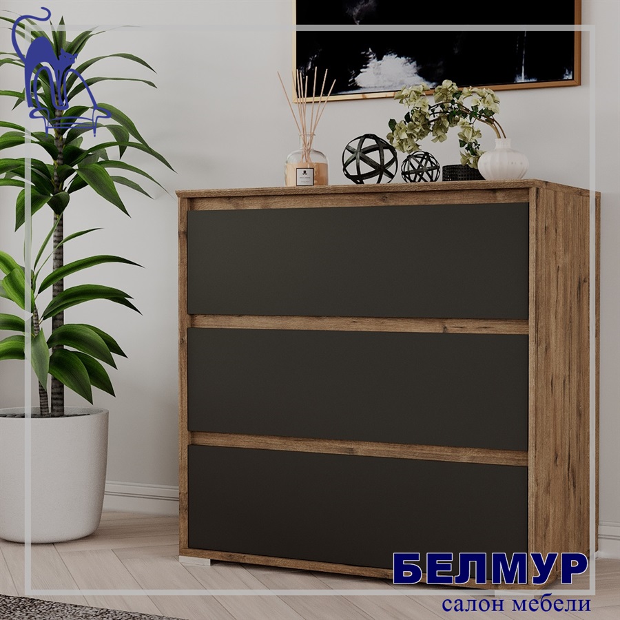 Комод Aleksa 3, 81.2х79.9х45, Дуб веллингтон/Кобальт