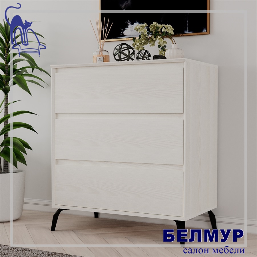 Комод Aleksa 3, 81.2х79.9х45, Ясень снежный/Ясень снежный/черный