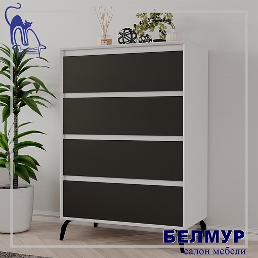 Комод Aleksa 4, 81.2х104.7х45, Белый премиум/Кобальт/черный