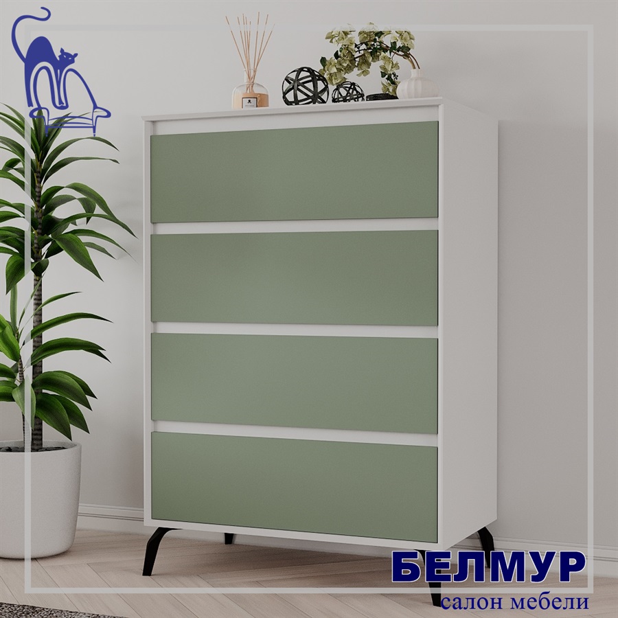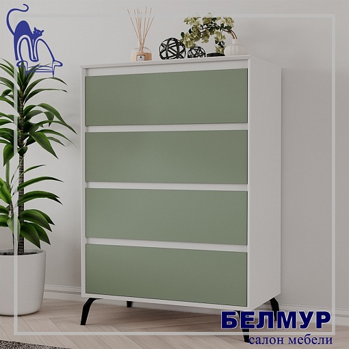Комод Aleksa 4, 81.2х104.7х45, Белый премиум/Зеленый самшит/черный