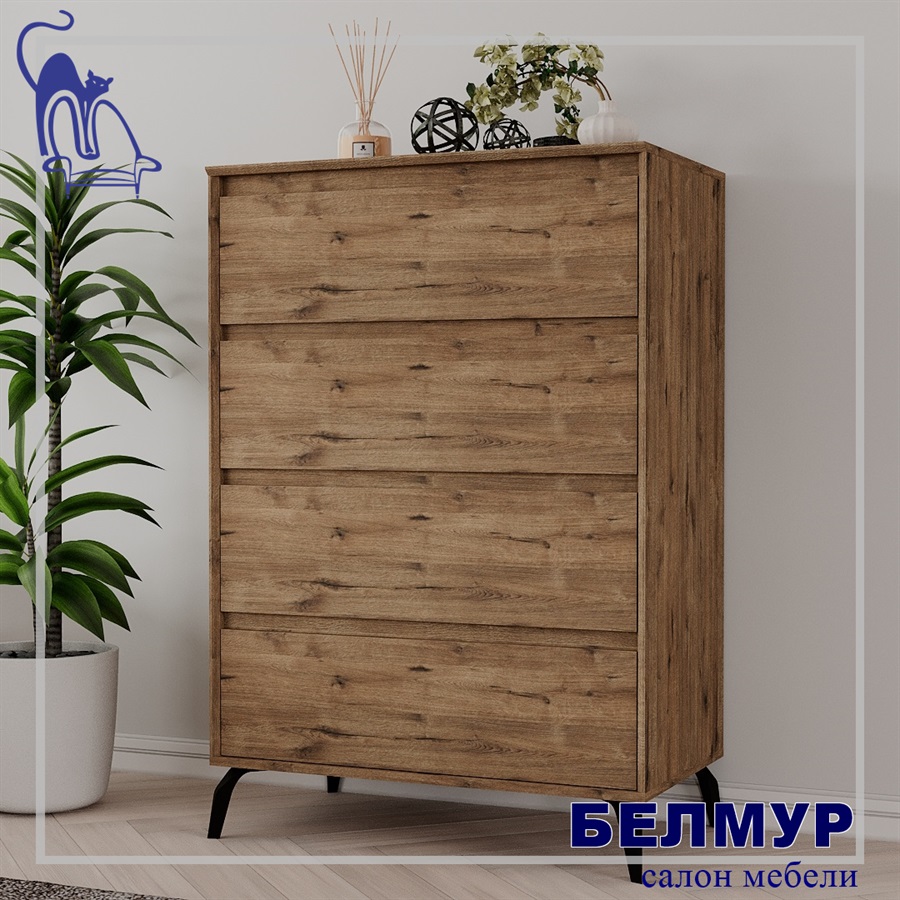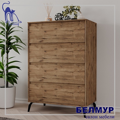 Комод Aleksa 4, 81.2х104.7х45, Дуб веллингтон/Дуб веллингтон/черный