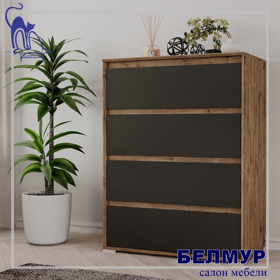 Комод Aleksa 4, 81.2х104.7х45, Дуб веллингтон/Кобальт