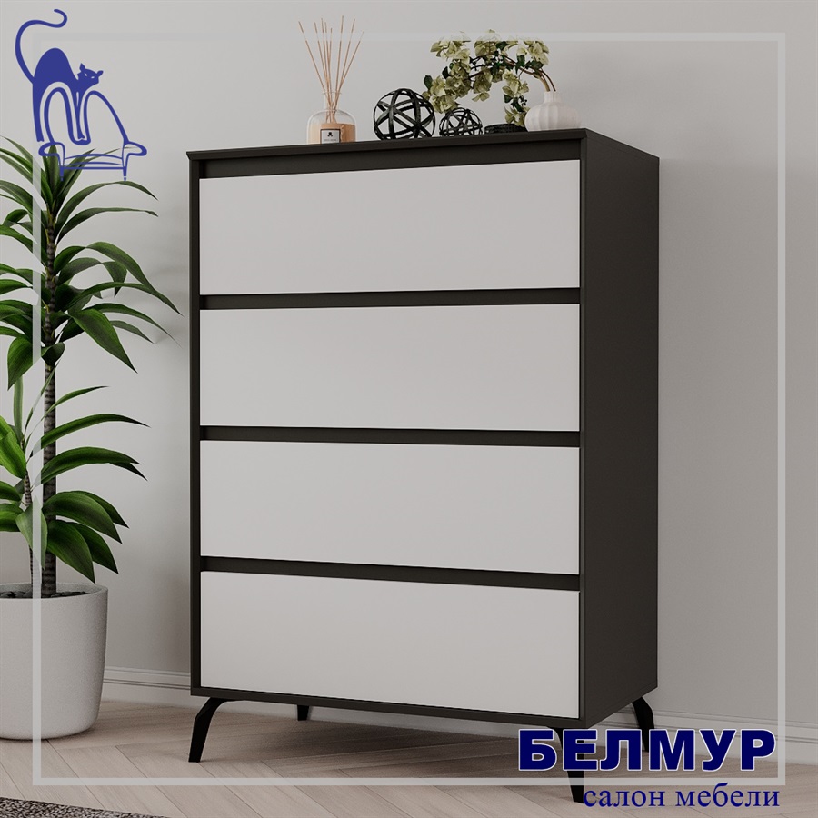 Комод Aleksa 4, 81.2х104.7х45, Кобальт/Белый премиум/черный