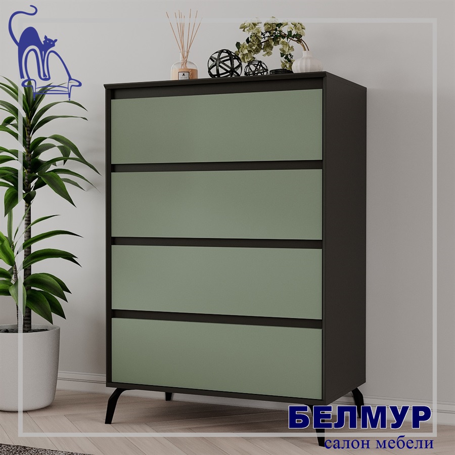 Комод Aleksa 4, 81.2х104.7х45, Кобальт/Зеленый самшит/черный