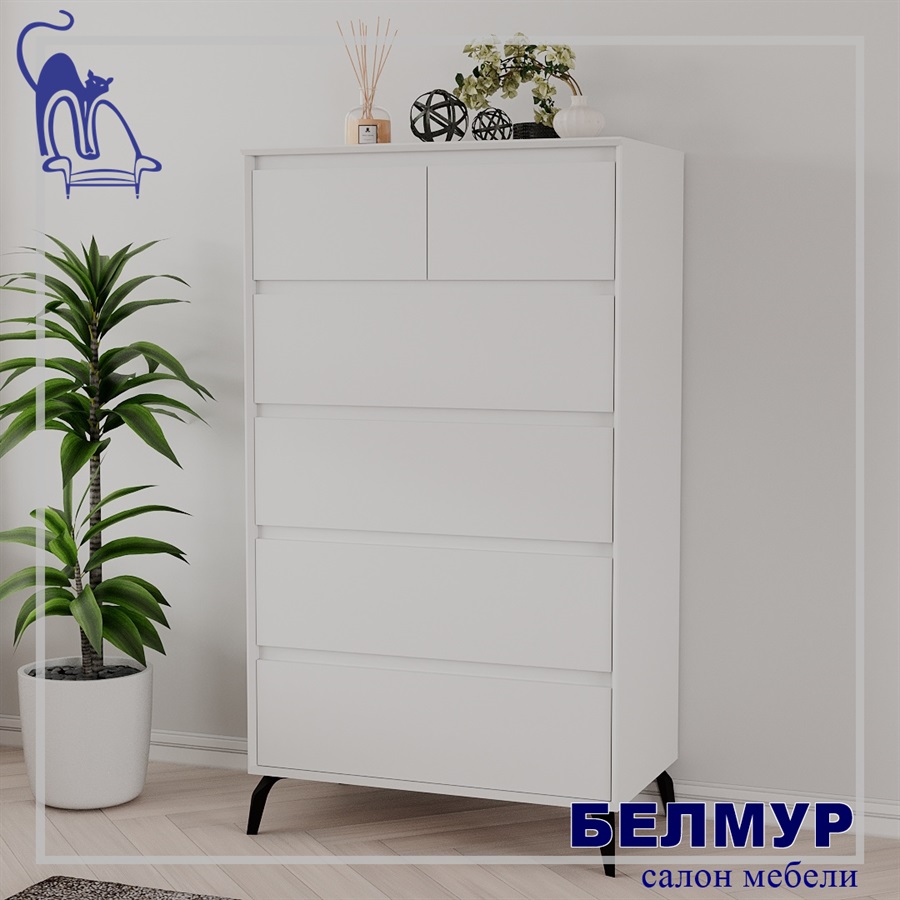 Комод Aleksa 5, 81.2х126.2х45, Белый премиум/Белый премиум/черный