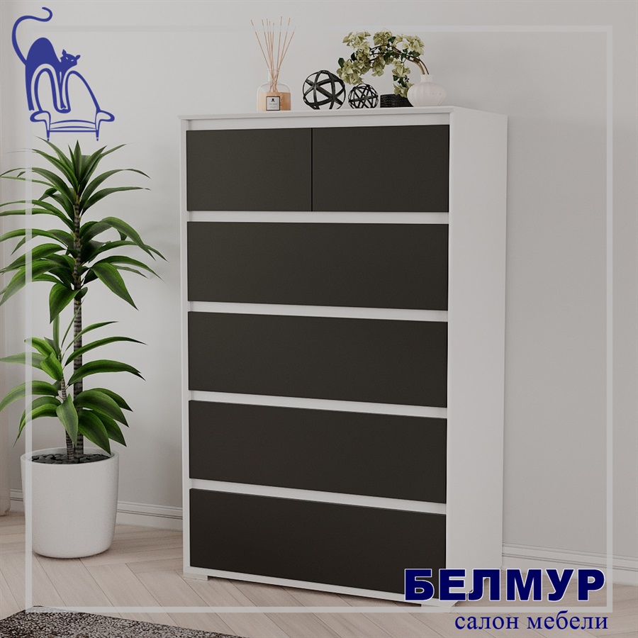 Комод Aleksa 5, 81.2х126.2х45, Белый премиум/Кобальт