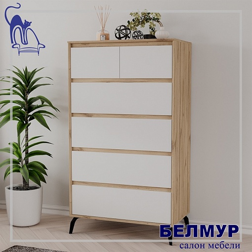 Комод Aleksa 5, 81.2х126.2х45, Дуб элисон/Белый премиум/черный