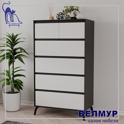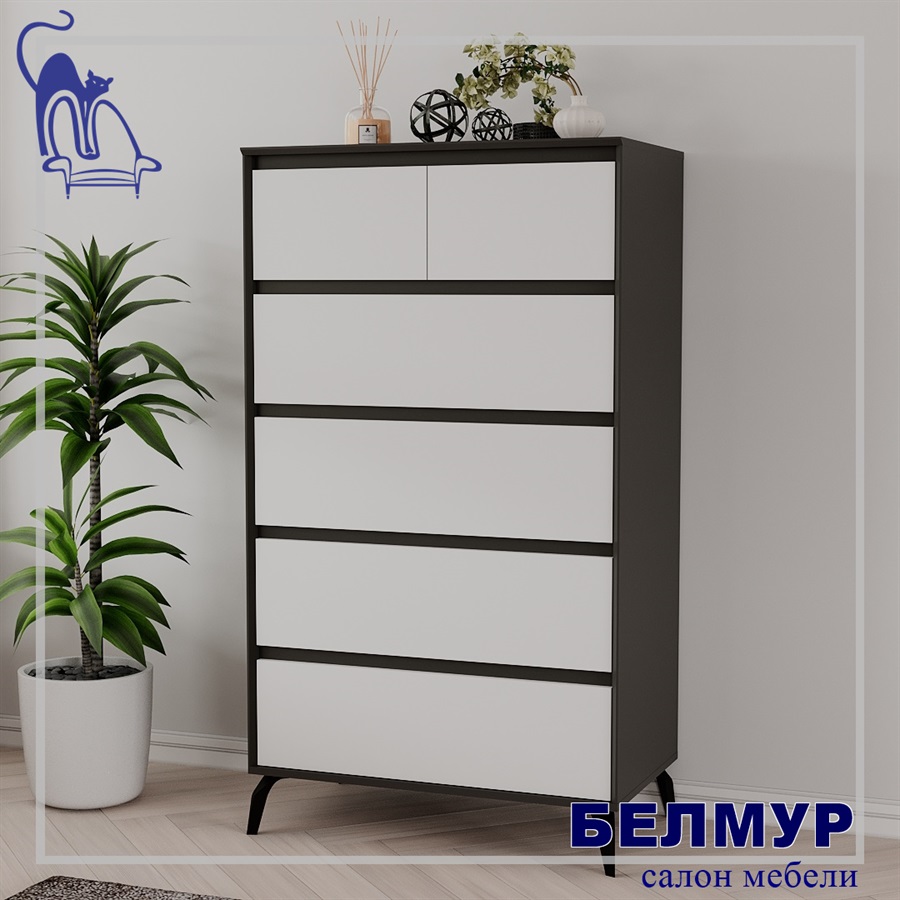 Комод Aleksa 5, 81.2х126.2х45, Кобальт/Белый премиум/черный