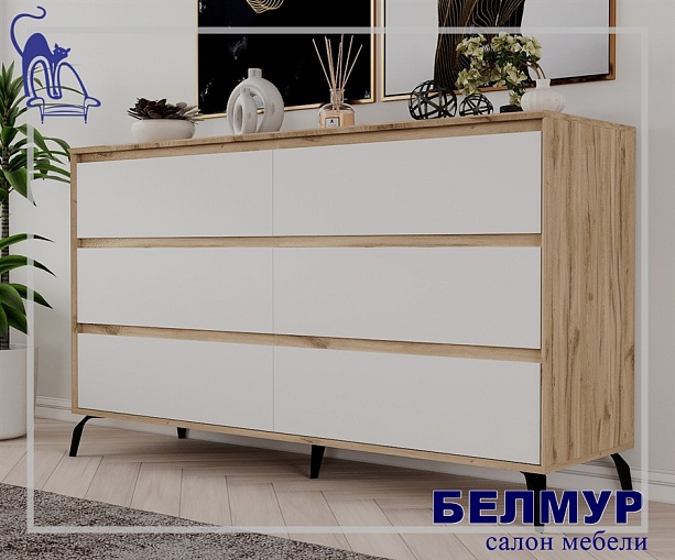 Комод Aleksa 6, 160.4х79.9х45, Белый премиум/Дуб элисон/черный
