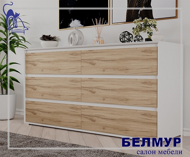 Комод Aleksa 6, 160.4х79.9х45, Белый премиум/Дуб элисон