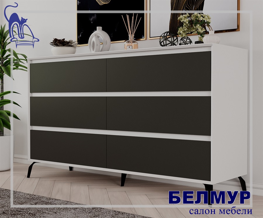 Комод Aleksa 6, 160.4х79.9х45, Белый премиум/Кобальт/черный
