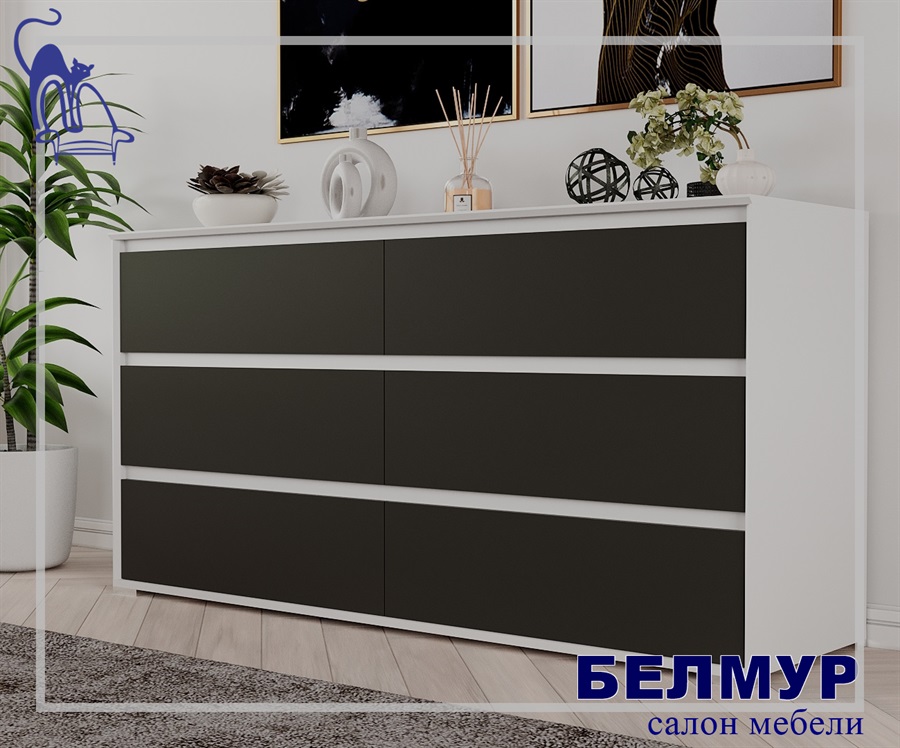 Комод Aleksa 6, 160.4х79.9х45, Белый премиум/Кобальт