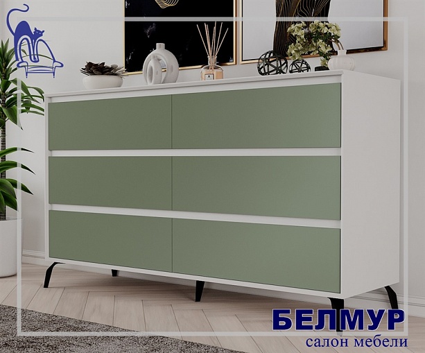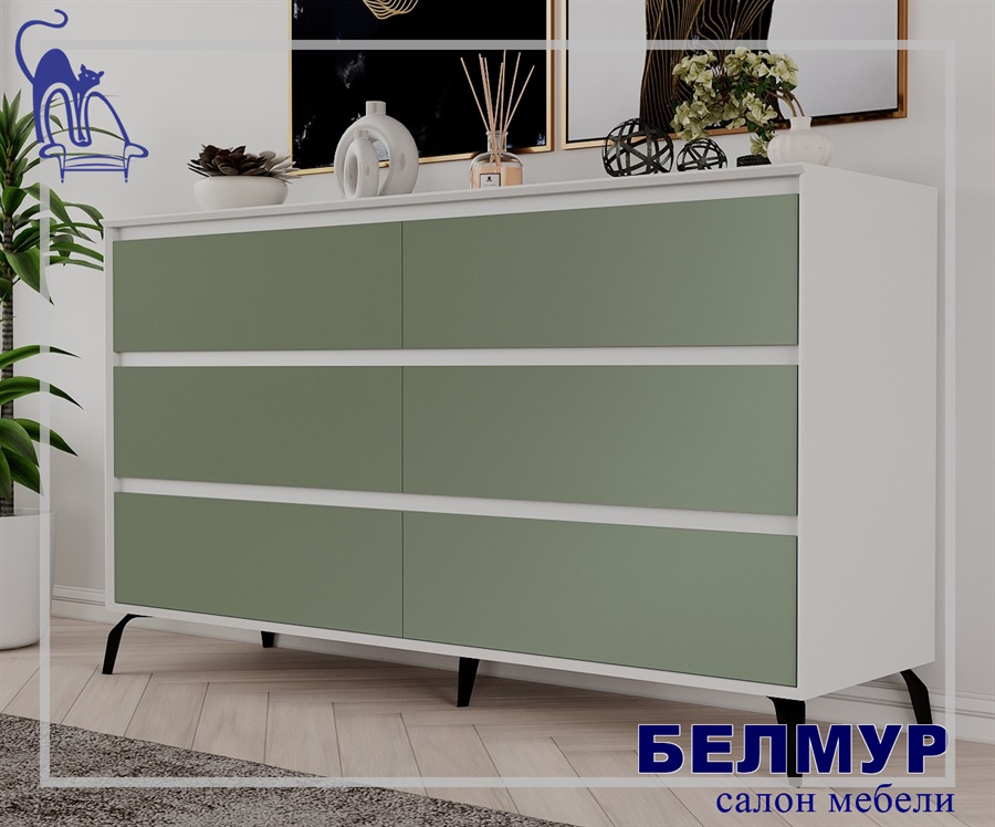Комод Aleksa 6, 160.4х79.9х45, Белый премиум/Зеленый самшит/черный