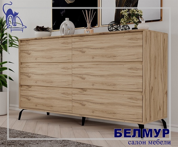 Комод Aleksa 6, 160.4х79.9х45, Дуб элисон/Дуб элисон/черный
