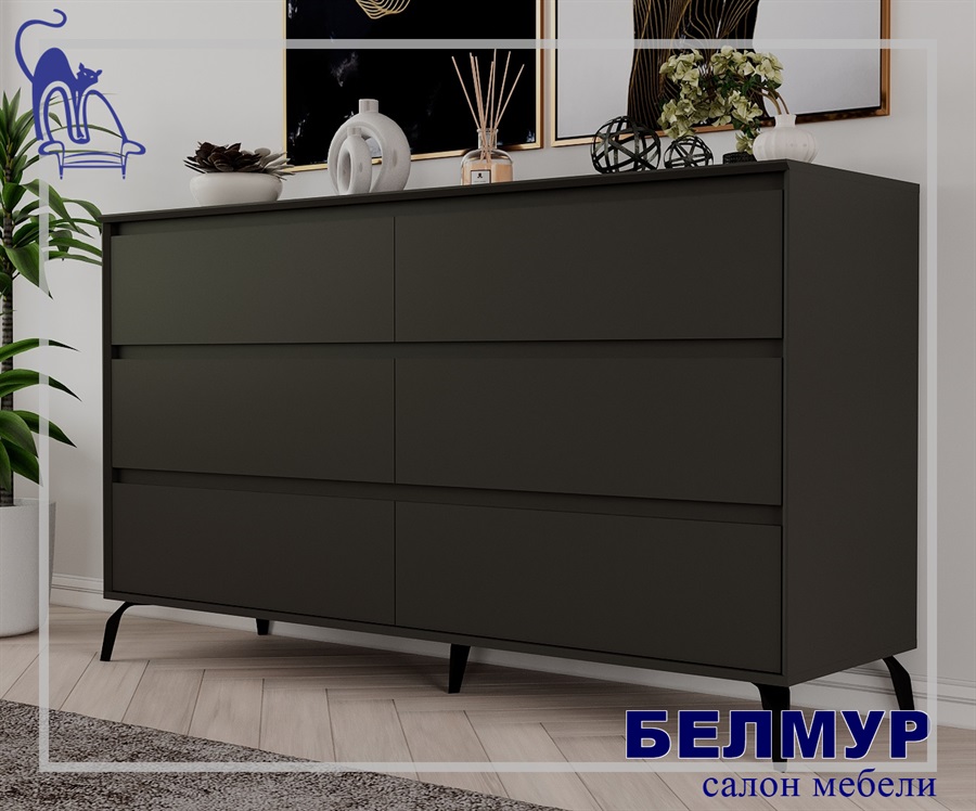 Комод Aleksa 6, 160.4х79.9х45, Кобальт/Кобальт/черный