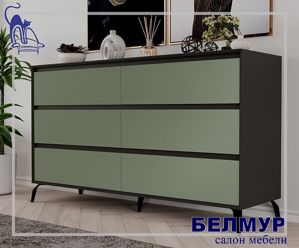 Комод Aleksa 6, 160.4х79.9х45, Кобальт/Зеленый самшит/черный