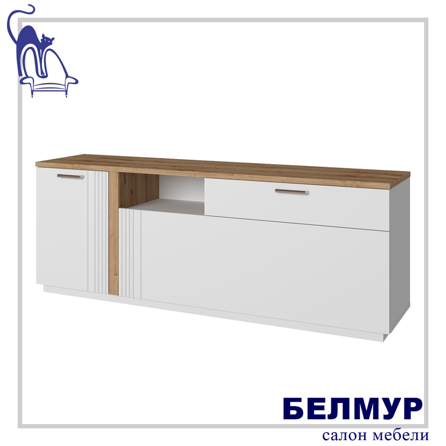 MATEO, Тумба RTV 2D1SN. Цвет БЕЛЫЙ / ДУБ НАВАРРА