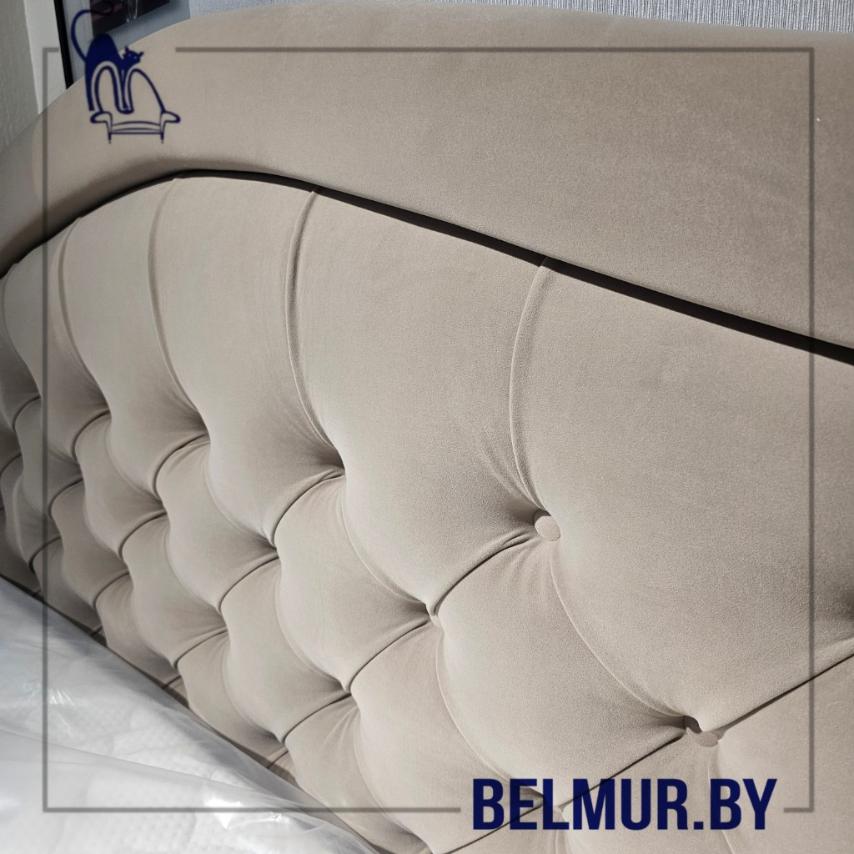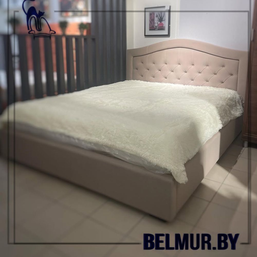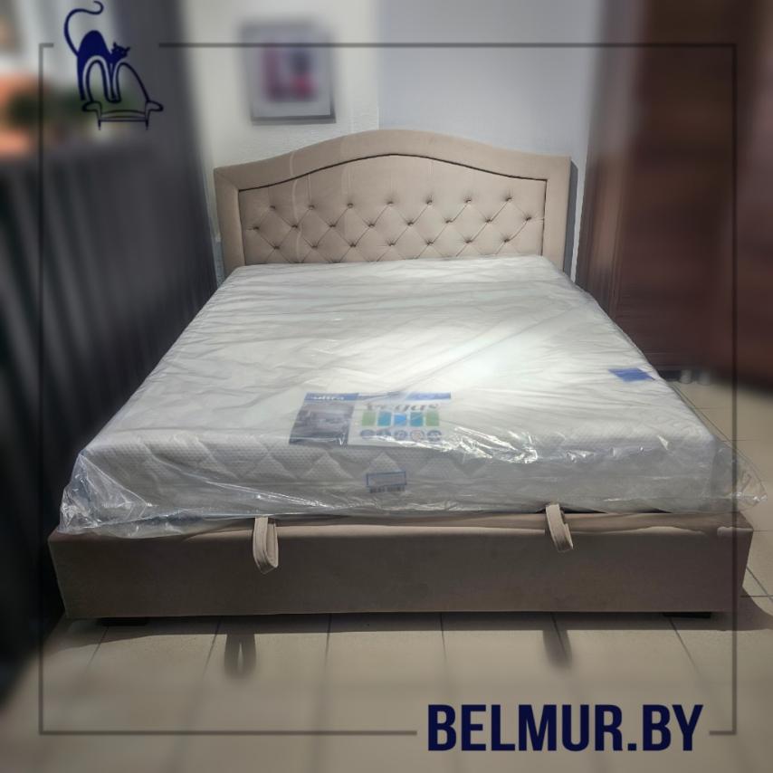 Кровать Дарина (фигурное изголовье, каретная стяжка, опоры-дерево) с ПМ гр.2 (Hloya 32)