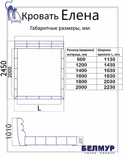 | Ширина, см | +23 см к ширине матраца |