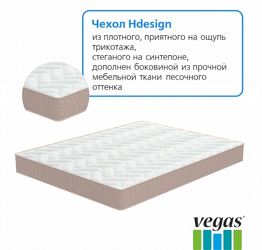 Несъемный чехол Hdesign из трикотажной ткани повышенной плотности, устойчивой к появлению катышек и затяжек. Боковые части чехла выполнены из плотной мебельной ткани песочного оттенка с рисунком-имитацией рогожки и дополнены кантом.