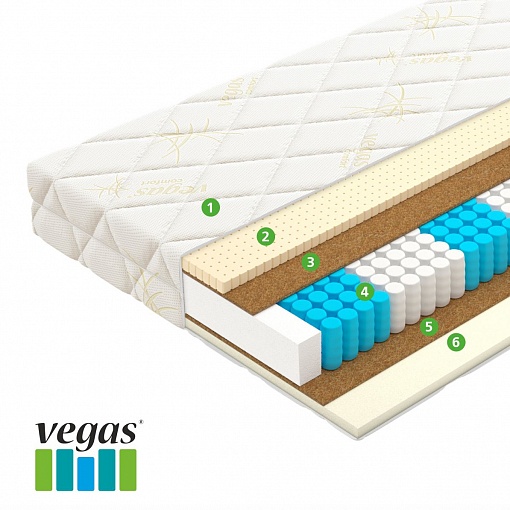 2 - Латекс - Натуральный материал, получаемый путем вспенивания сока каучукового дерева. Мягкий, гигиеничный и хорошо вентилируемый, он обеспечивает упругую поддержку позвоночнику.
