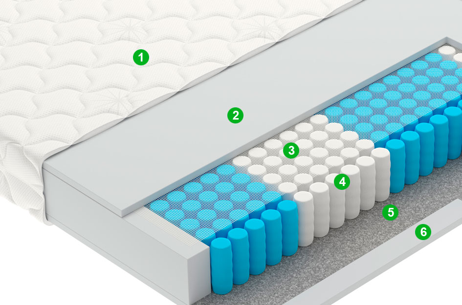 5- Термоволокно - Защитная прослойка из термопресcованного волокна. Разделяет пружинный блок и мягкие наполнители.