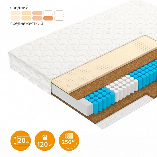 | Базовый блок матраса | Независимый пружинный блок Smartpocket Pro 5 Zone, 256 пружин/м.кв., 14 см |