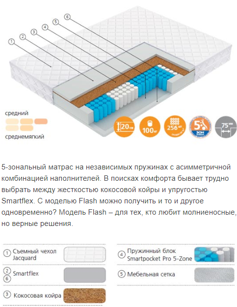 | Количество поперечных зон жесткости | 5 зон комфорта |