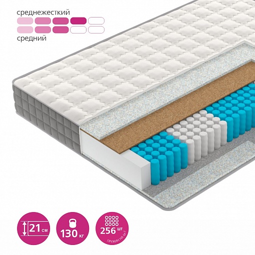 | Наполнение | Базовый блок матраса: 5-зональный Smartpocket PRO 5-ZONE Материалы: кокосовая койра (1 слой), пеноматериал (AirFoam) (2 слоя) |