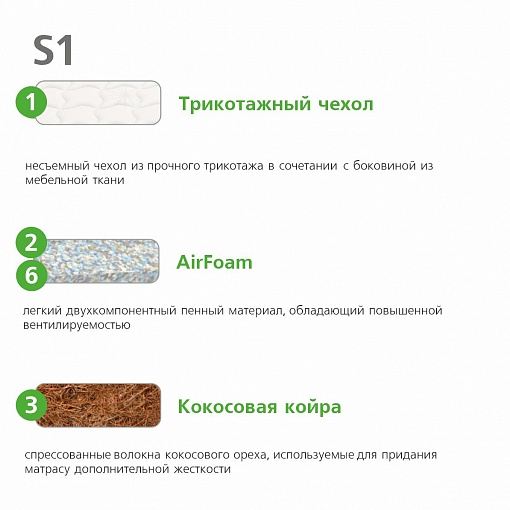 3 - Кокосовая койра - Натуральный материал из спрессованных волокон кокосового ореха. Используется для придания матрасу жесткости.