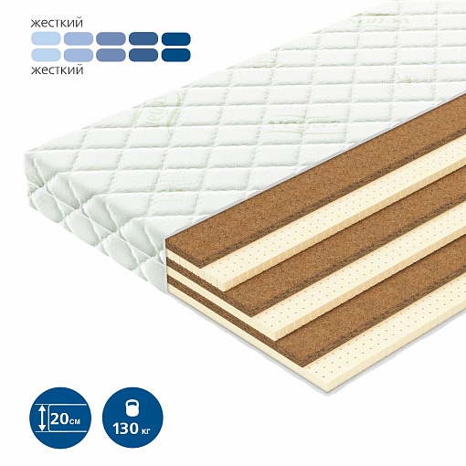 2, 4, 6 - Кокосовая койра - Натуральный материал из кокосовых волокон, спресованных в однородные плиты. Слой используется для придания матрасу дополнительной жесткости.