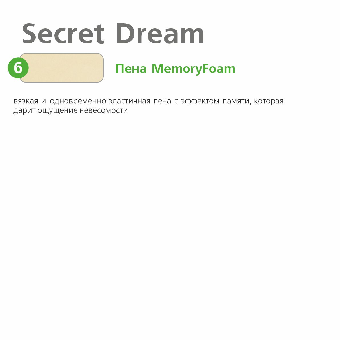 6- MemoryFoam - инновационный материал с памятью формы, разработанный для нужд аэрокосмической отрасли. Обладает одновременно вязкостью и эластичностью, что дарит спящему ощущение невесомости.