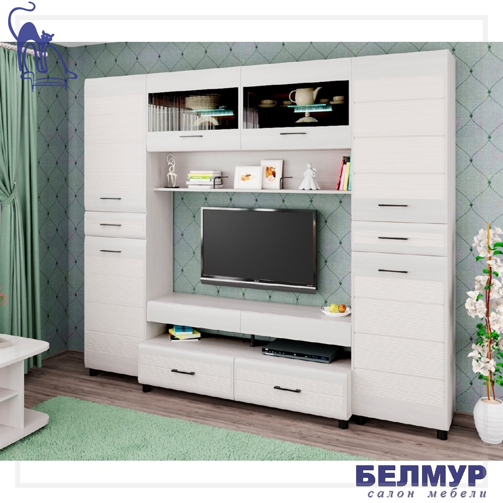 - В гостиной "Глейс" необычная открытая полка является как будто продолжением ручки - декора. Она имеет вид визуально объемного, толстостенного, цельнодеревянного бруса и при этом она необычайно легкая. Поэтому элементы мебели из тамбурата на всем протяжении срока эксплуатации мебель сохраняет идеальную форму и стильный вид.