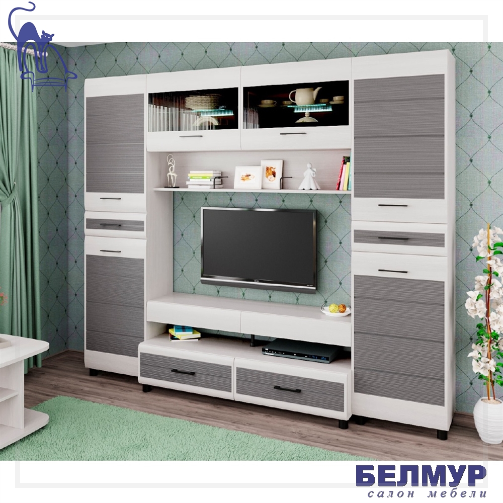 - В гостиной "Глейс" необычная открытая полка является как будто продолжением ручки - декора. Она имеет вид визуально объемного, толстостенного, цельнодеревянного бруса и при этом она необычайно легкая. Поэтому элементы мебели из тамбурата на всем протяжении срока эксплуатации мебель сохраняет идеальную форму и стильный вид.
