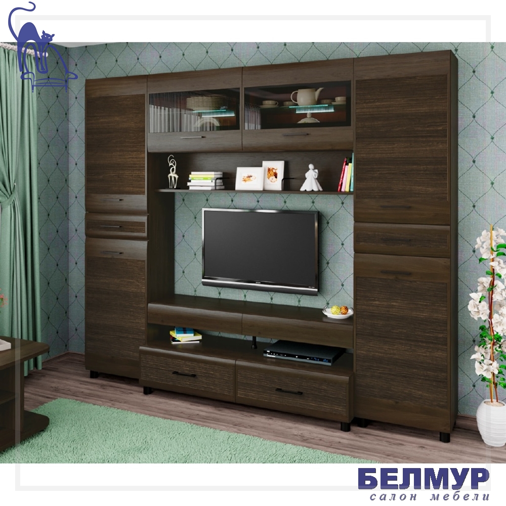 - В гостиной "Глейс" необычная открытая полка является как будто продолжением ручки - декора. Она имеет вид визуально объемного, толстостенного, цельнодеревянного бруса и при этом она необычайно легкая. Поэтому элементы мебели из тамбурата на всем протяжении срока эксплуатации мебель сохраняет идеальную форму и стильный вид.