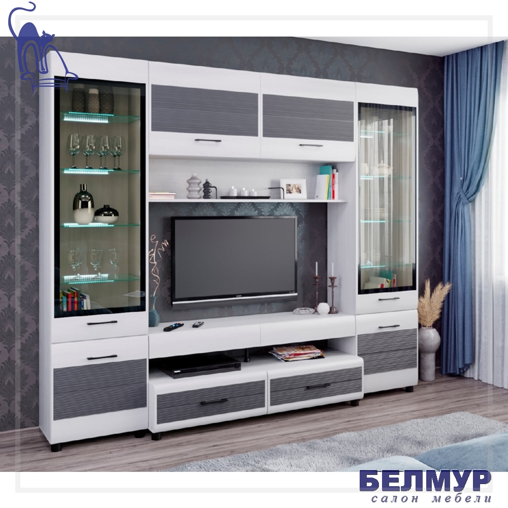 - В гостиной "Глейс" необычная открытая полка является как будто продолжением ручки - декора. Она имеет вид визуально объемного, толстостенного, цельнодеревянного бруса и при этом она необычайно легкая. Поэтому элементы мебели из тамбурата на всем протяжении срока эксплуатации мебель сохраняет идеальную форму и стильный вид.